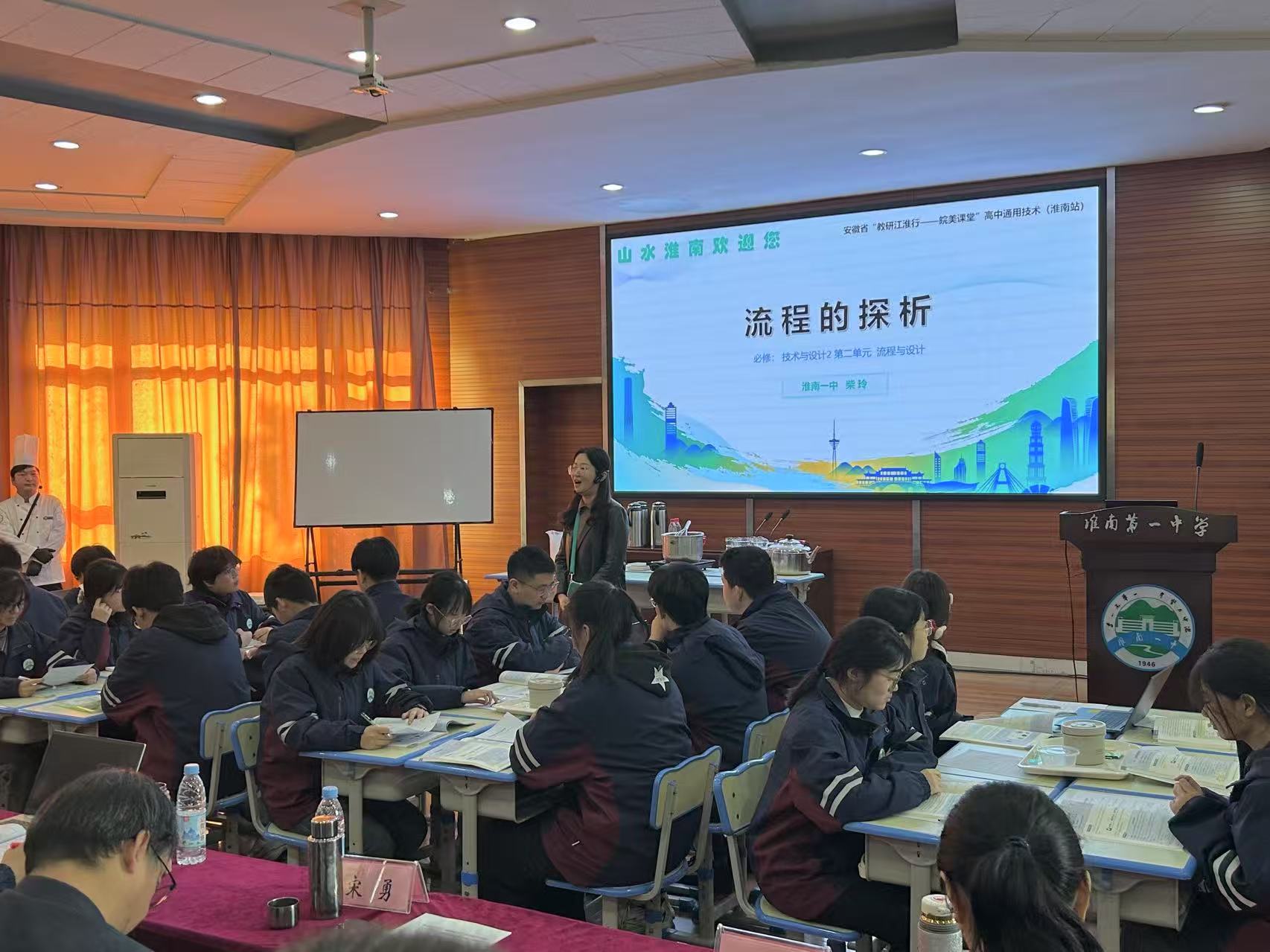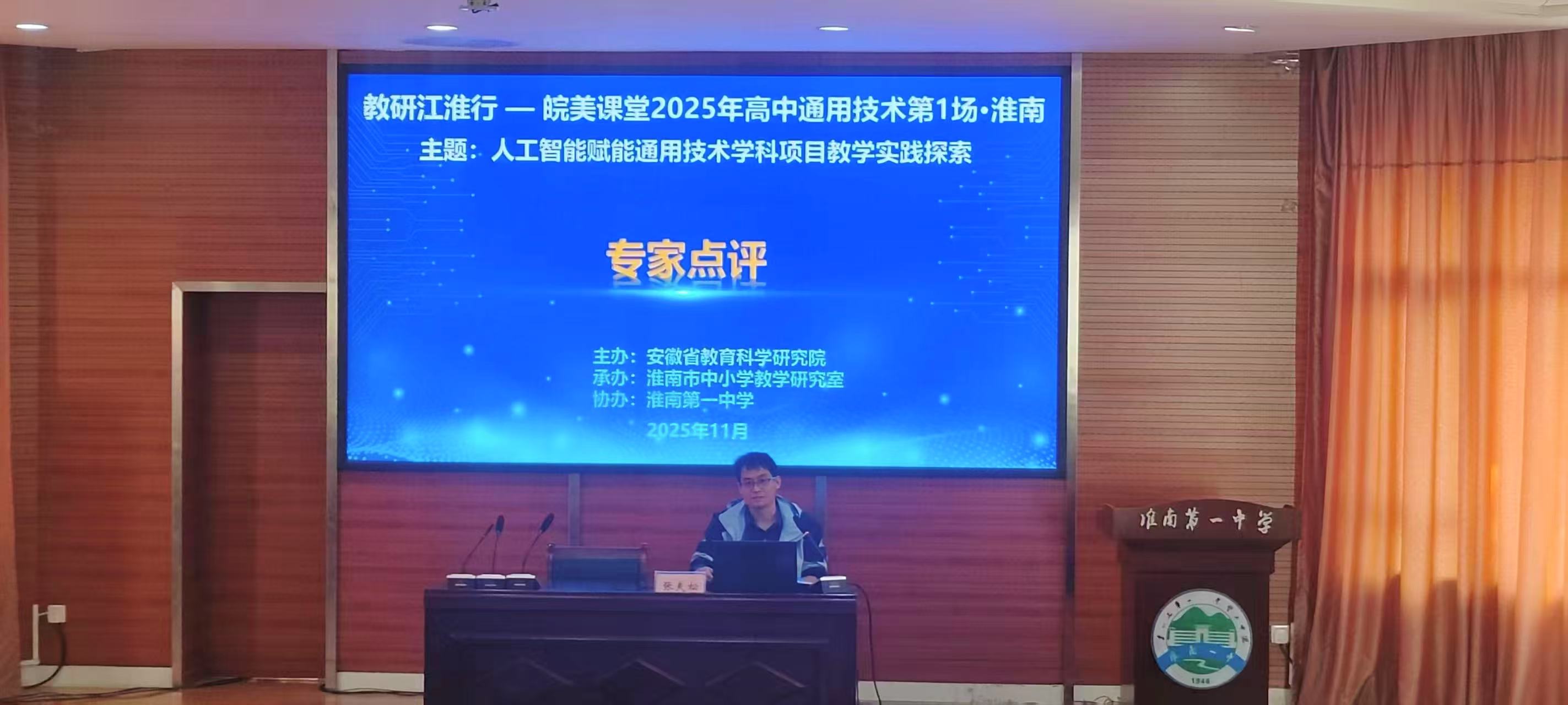 2025年11月5日,由安徽省教科院主办、淮南市教研室承办、淮南一中协办的“教研江淮行——皖美课堂” 高中通用技术教学研讨活动的第一场在我校掬淮楼二楼报告厅举行。