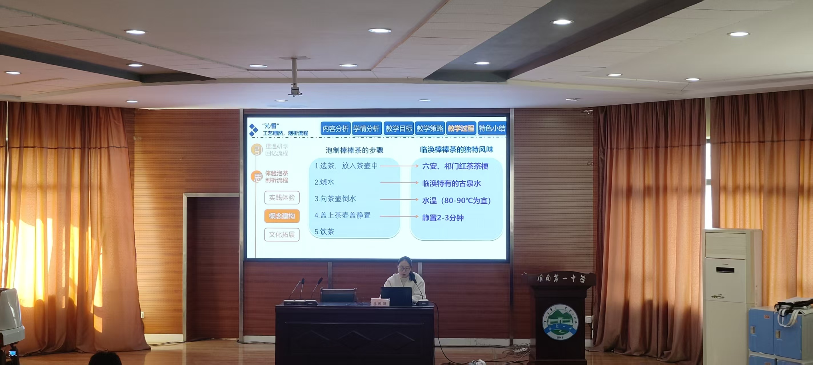 淮南一中柴玲老师以苏教版必修二第二单元《流程的探析》为内容展开教学。她以“制作豆腐脑招待外地老师”为实践任务,课堂上邀请厨师长现场指导,结合淮南王刘安制豆腐典故与智能体淮小豆,学生分组实操原料称量、温度控制,直观感受流程优化的影响,在烟火气中深化对流程价值的理解。